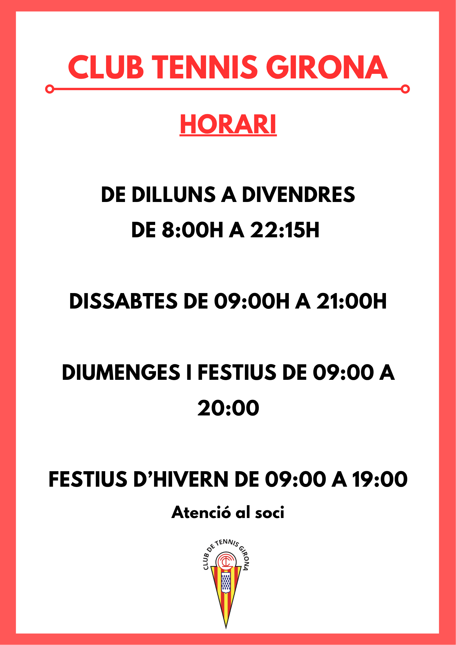 HORARIS D'OBERTURA CLUB