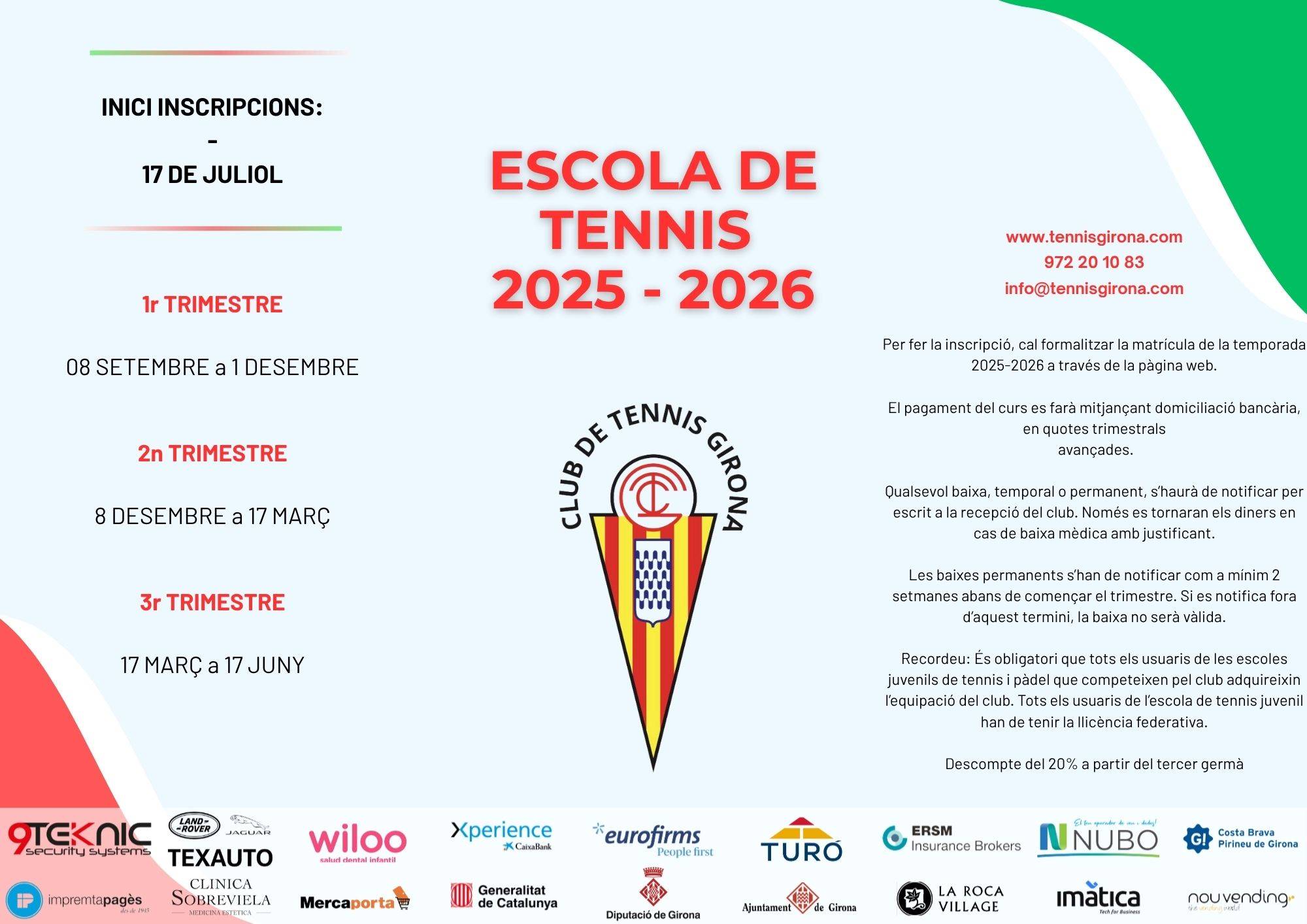 INICI PRIMER TRIMESTRE: 8 SETEMBRE